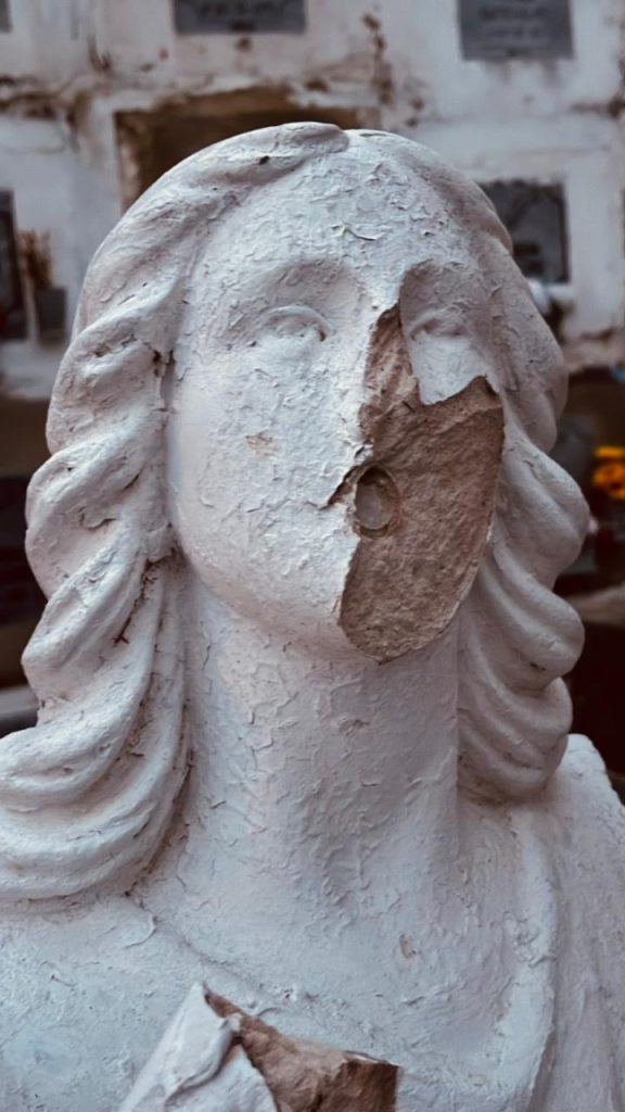 Esculturas maltratadas del Cementerio Universal